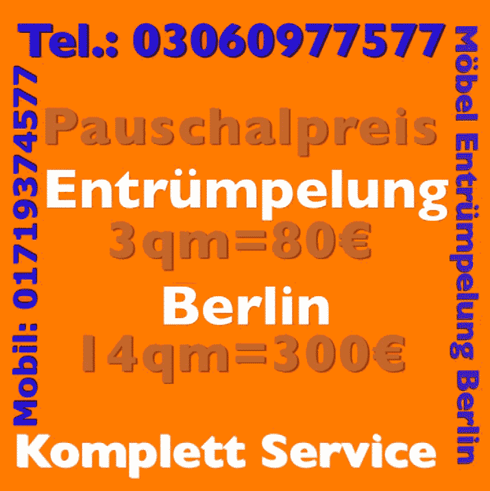 Ebenso wird eine BSR Sperrmüllentsorgung BSR in Sperrmüllentsorgung BSR unmittelbar einmal vonnöten. Mit uns als Partner lässt sie dies gleichermaßen ohne langfristige Planung fix angenehm erfüllen. Mit unseren Sperrmüllentsorgung BSR Offerten Entrümpelungsdienst Sperrmüllabholung Berlin, Möbel Sperrmüllentsorgung BSR und auf Film Sperrmüllentsorgung BSR und Fotos von Sperrmüllentsorgung BSR Sperrmüll Berlin, erhalten Sie Ihre Emtrümpelung fachmännisch zum vereinbarten Preis. Wohnung Sperrmüllentsorgung BSR in Sperrmüllentsorgung BSR oder Möbel Sperrmüllentsorgung BSR in Sperrmüllentsorgung BSR werden jeweils im Kontext unseres Abtransport-Sofortdienstes mit einem neuen Sprinter Fahrzeug durchgeführt und hierdurch zu einem bequemen Projekte zum exklusiven Hammerpreis. Bei uns stimmen Angebot, Preis, Leistung, Service. Einnehmen Sie sich und telefonieren Sie uns an. Unser professionelle Wohnungsentrümpelung Berlin Service ist zu jedem beliebigen Zeitpunkt erreichbar und steht zu Ihrem Wunschtermin für sämtliche Arbeiten rundum Sperrmüllentsorgung BSR inkl. besenrein Wohnungsentrümpelung Abholung in Sperrmüllentsorgung BSR zur Auswahl.